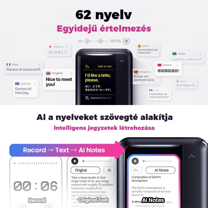 [Kétirányú nyelvi fordító fülhallgató] A ChatGPT-4o által működtetett fülhallgató 45 nyelvi támogatást nyújt, így sokoldalú fordítóeszközzé válik a nemzetközi üzleti életben és utazásokon. A valós idejű fordítás minden fülhallgatóban lehetővé teszi a zökkenőmentes kétirányú beszélgetést, így ezek a fordító fülhallgatók ideális megoldást jelentenek a nyelvi korlátok áttörésére. A mesterséges intelligencia erejével rendelkező fordítóeszközként fordítóként, kereskedőként és zsebben hordozható beszélgetőeszközként is funkcionálnak.