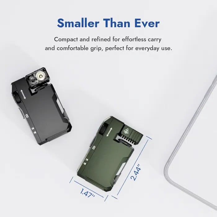 Kompakt Ă©s könnyƱ  â MĂ©rete 3,7 cm Ă 1,5 cm Ă 6,2 cm, sĂșlya mindössze 52 g, olyan könnyƱ, mint egy tojĂĄs.