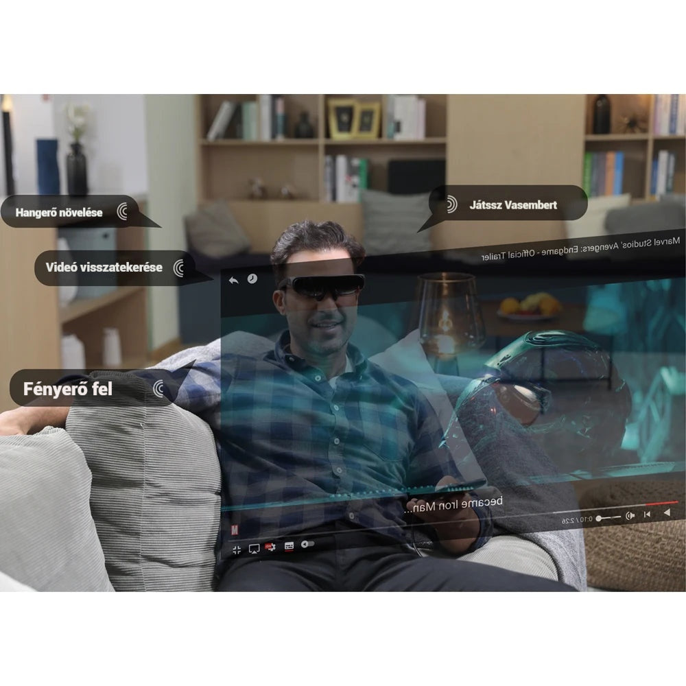 A Rokid Air egy karcsú és könnyű kiterjesztett valóság (AR) headset, amely magával ragadó élményeket hoz a szeme elé. A mindössze 83 grammos súlyával olyan könnyű viselni, mint egy napszemüveget. A Rokid Air használatához egyszerűen csatlakoztassa a készülékéhez az USB-C kábelen keresztül, vagy töltse le a Rokid alkalmazást, és kövesse a megadott lépéseket. A csatlakoztatás után a headset egy hatalmas virtuális képernyőt vetít a szemed elé, így privát mozi környezetben élvezheted a videókat, játékokat és alkalmazásokat. A Rokid Air-t a készülékedről vezérelheted. fejlett optikájának és intuitív kezelőszerveinek köszönhetően a tartalmak navigálása gyerekjáték, így tökéletes az útközbeni szórakozáshoz és termelékenységhez. Akár filmet néz, akár játékot játszik vagy dokumentumot néz, a Rokid Air zökkenőmentes és kényelmes élményt nyújt, miközben szilárdan illeszkedik.